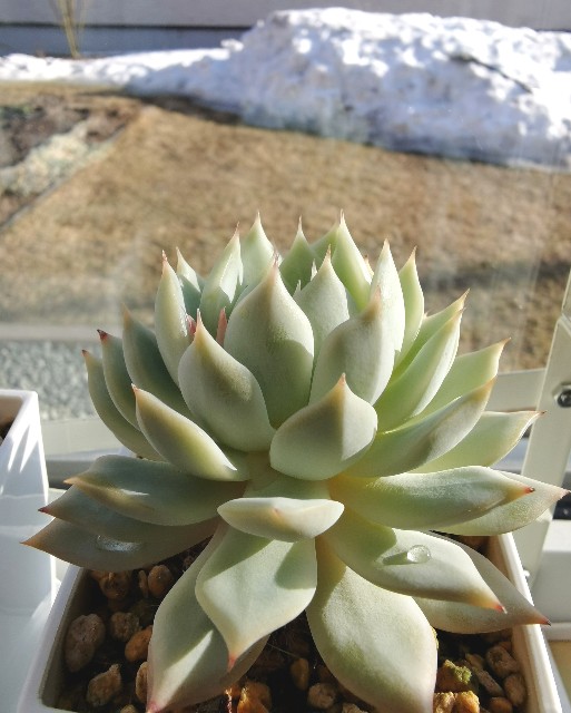 夏にベランダで育てていた多肉達です。油断して凍傷なってしまって、寒くて そのまま放置した姿です。下のは桜吹雪だと思います。